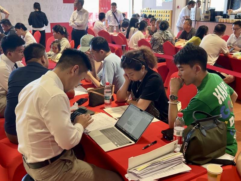 8月30日傍晚,上海浦东新区三林板块翡云悦府是中环附近的新楼盘,消费者正在签约。新京报贝壳财经记者俞金旻摄