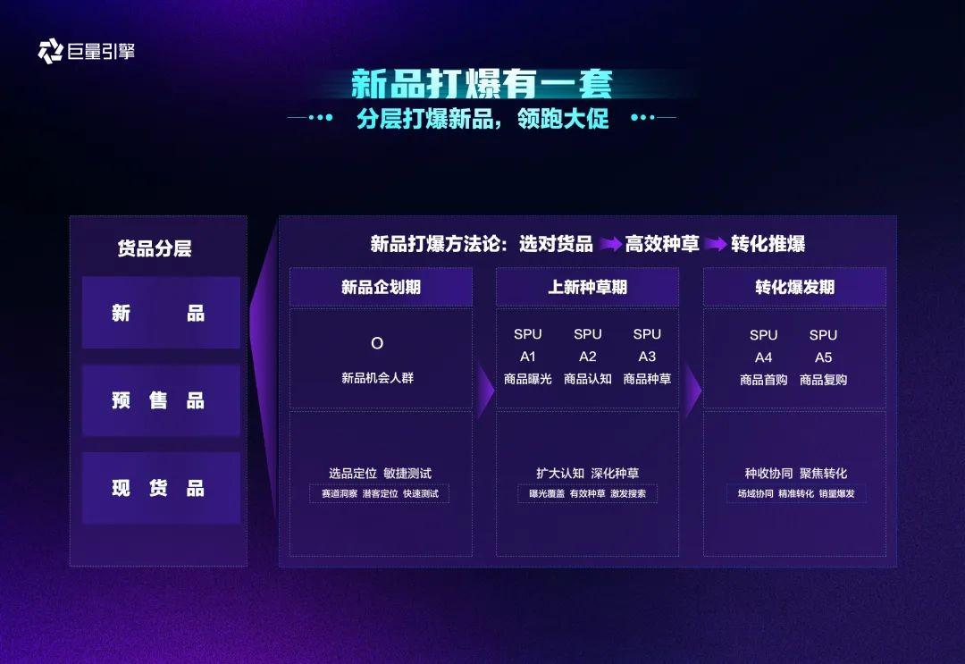 在新品支持方面,不少商家期待借助双11大促契机打出爆款。为此,巨量引擎提出了“双11新品打爆方法论”,提供从新品企划、上新种草到转化爆发的完整周期全链路营销方案。