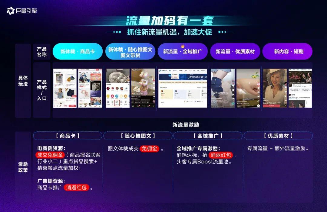 巨量千川、商城搜索、原生广告等各个产品均为商家提供全周期激励政策,让商家从抖音域内到域外,实现全域破峰。
