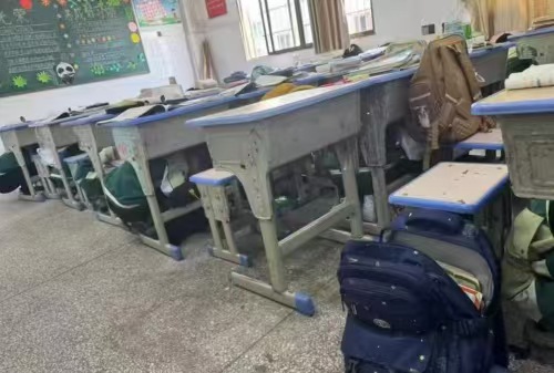 演练分为两个主要环节:首先是教室内的躲避环节。演练开始后,学生们按照应急演练要求,迅速采取防护措施,躲到课桌下,保持身体蜷缩状态,保护头部安全,为后续逃生做好准备。