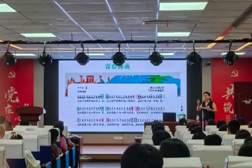 随后,音乐教研员陈亚丽开展微讲座,她围绕“音乐在义务教育优质均衡发展中的实践与探索”,从常态化教学实施到艺术评价反馈,深度剖析音乐教育如何以美育为土壤,滋养学生心灵成长。“让每个孩子的精神世界因音乐开花结果”,陈老师的分享为区域音乐教学指明方向,引发与会教师共鸣。