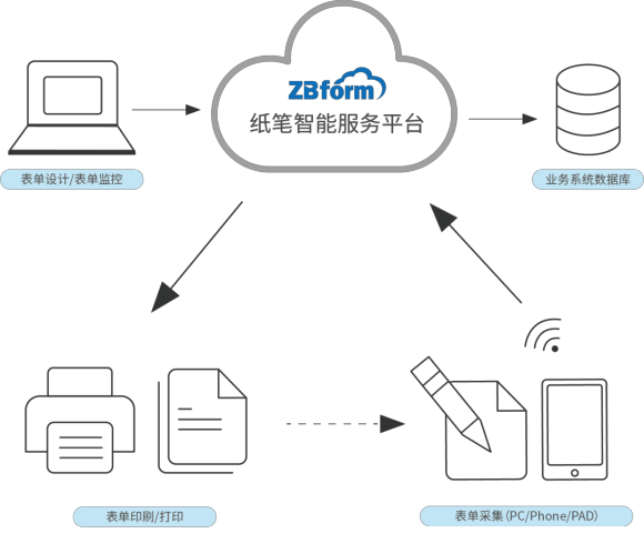 手写笔迹的计算机体识别,纸质表单的数据库建模,用户报表的自定义生成,业务系统标准数据接口。