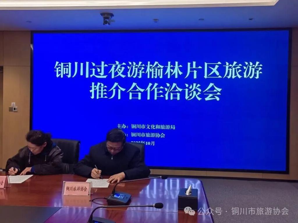 10月23日,铜川过夜游旅游推介合作洽谈会在榆林市成功举办。榆林市旅游协会、榆林市旅游集散中心及当地重点旅行社负责人应邀参会,与铜川市重点景区代表共聚一堂,围绕深化区域旅游合作、推动客源互送、打造精品线路展开深入交流,并达成多项合作协议。