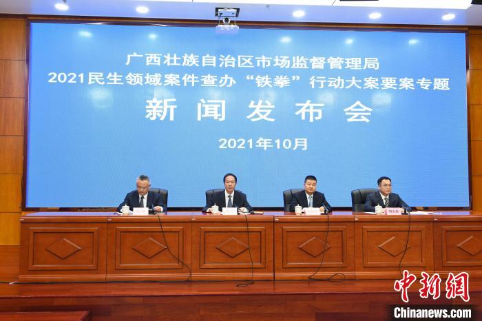 广西市场监管局当天举办新闻发布会,刘军说,在“铁拳”行动推进过程中,广西注重查处大案要案,从严从重惩戒违法分子,初步实现了让监管露出牙齿,让违法付出代价的目标。