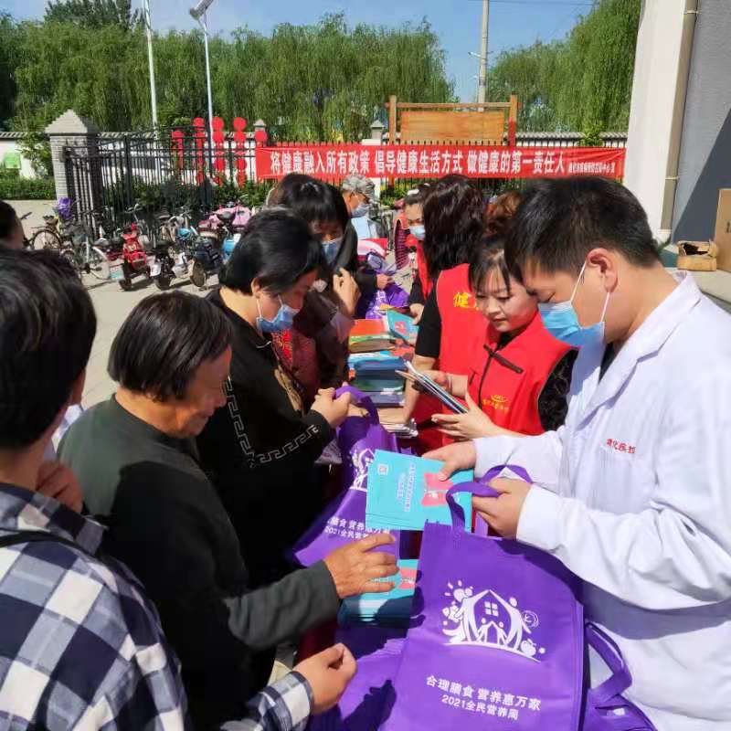 此次活动由遵化市疾病预防控制中心主办,唐山市疾病预防控制中心、遵化市团瓢庄乡政府、山里各庄村委会、遵化市营养学会以及相关学校、医院、社区卫生服务中心协助举办,特邀唐山疾控中心营养与慢病防控专家,开展现场讲座与问答,并为参与群众发放健康礼品,现场悬挂“全民营养周”、“世界高血压日”宣传主题条幅,现场摆放合理膳食、高血压防控、三减三健等宣传展牌,社区卫生服务中心人员现场为群众免费测量血压并开展健康指导,遵化市营养学会以及各相关单位营养健康志愿者开展现场咨询服务,并为参会群众发放健康知识手册以及膳食宝塔冰箱贴、限盐勺、印有营养健康促进知识的手提袋等健康支持用品,活动现场工作人员热情传播营养与健康促进知识,参会百姓积极参与互动,此次活动既拉开了“健康中国·营养先行”的帷幕,也将慧吃慧动、以三减促三健等健康知识的的火种撒到了百姓心中。