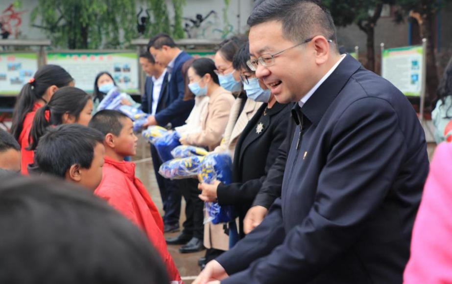 活动现场,杨得志为同学们发放了崭新的运动服,并嘱咐孩子们要好好学习。