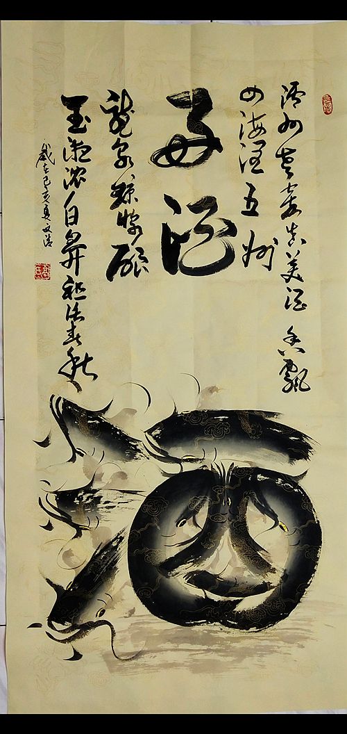 艺术经验不断积累,到高文清这一代,从小耳闻目染,又有名师指点,画技娴熟,得心应手。用之于“鱼书”,相得益彰。从1970年开始,高文清在遵循前辈“鱼书”传统技法上大胆创新,在宣纸上摸索实践,形成了自己的“鱼书”系列。