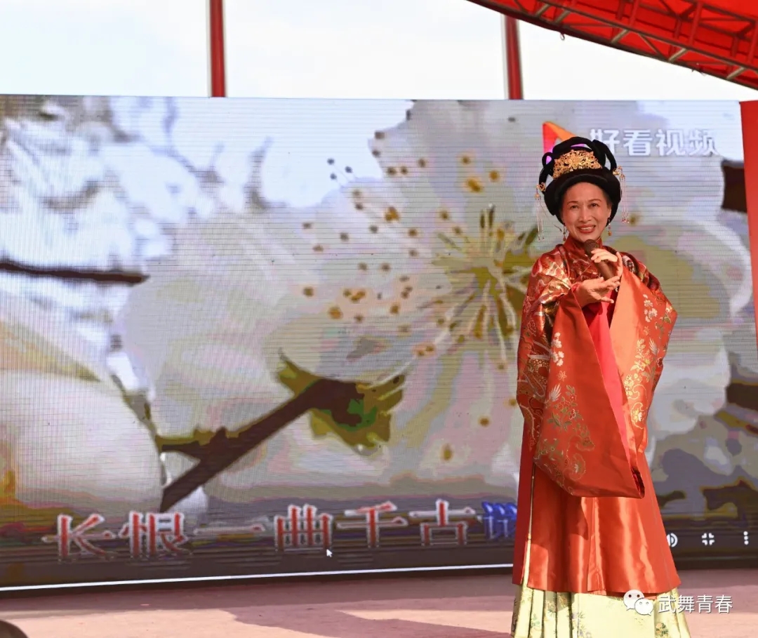 拿着话筒的这位是我们武舞青春的校长也是本次活动的主持人张羽彤。她在接受媒体采访时说希望在不久的将来,我们华夏子民都穿着汉服过传统节日,甚至穿着汉服逛街、开车、工作、学习......