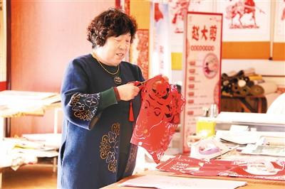 在赵美玲工作室的墙上,有一幅两米高的剪纸,上面是中国古代武将——关羽。记者发现,这幅作品和赵美玲的其他作品不甚相同,许多细节并非传统剪纸的表现形式,而是借鉴了动漫和游戏作品中人物形象的元素。赵美玲告诉记者,这是她的一名年轻学生创作的。“咱们的剪纸图案也不能一成不变,看到好看的图案,也要借鉴过来。在这一块,年轻人做的比我好多了。”如今在赵美玲的带领下,越来越多的年轻人参与到剪纸的传承工作中,并往这项古老的技艺中加入越来越多富有活力的内容。
