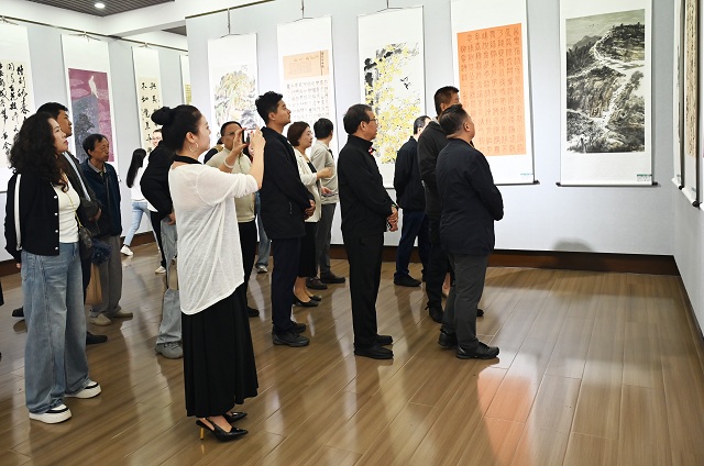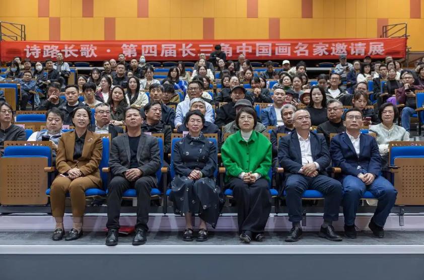 2025年11月24日下午,湖州市南浔区菱湖紫砚书画院、湖州市南浔区施酒故里昌硕文化研究会接待了来自绍兴市越城区孙端街道文联、鲁迅外婆家墨趣会、绍兴市上虞区国学促进会的书画文化名流团队一行。首先在菱湖镇紫砚书画院举行座谈会,双方进行吴越两地水乡文化艺术交流,参观了丁玉林院长的工作室,丁院长拿出其创作的十米长卷群鱼图、长卷百虾图等介绍宣传菱湖特色水乡鱼文化,同时介绍了水乡菱湖蚕农养蚕的过程和菱角等一系列作品。