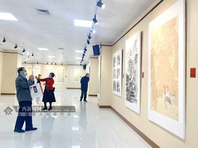 罗城仫佬族自治县庆祝中国共产党成立100周年书画摄影作品晋京展在南宁市工人文化宫举行巡展。广西新闻网记者 陶媛 摄