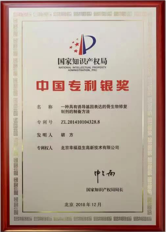 目前幸福益生已申请发明专利47项,国际专利7项,科技成果转化17项,2018年获得国家知识产权局颁发的中国专利银奖(全国共59项),获得科技部、工信部的各项支持,同时连续3年获得北京市重点工程项目。产品远远超越目前英国、美国、日本同类材料公司,远销日本、韩国等市场。