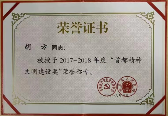作为Regesi再生医学新材料生产的企业创始人,各种荣誉、嘉奖也接踵而至:胡方获得了北京市委、市政府“首都精神文明建设奖”、国家知识产权局“中国专利银奖”、中科院“国科大杯”一等奖、科技部火炬中心“中国创新创业大赛新材料总决赛金奖”“中国医药创新百强企业”、海淀区委“感动海淀十大文明人物”、科技部“龙门创将”12强、海淀区政府“海英人才”、北京市知识产权局“知识产权创新领军人才”、北京市“全国道德模范推荐候选人”。